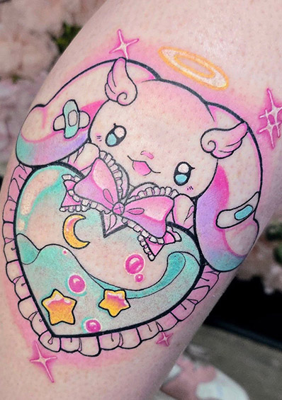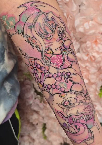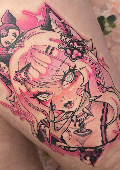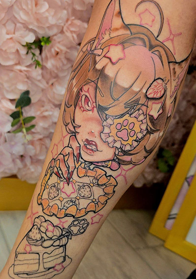 My style blends cute and colorful with dark and edgy, perfect for characters and stories that balance sweetness with strength, or innocence with grit. If you’ve ever wanted a tattoo that captures both sides, you’ve found the artist!
